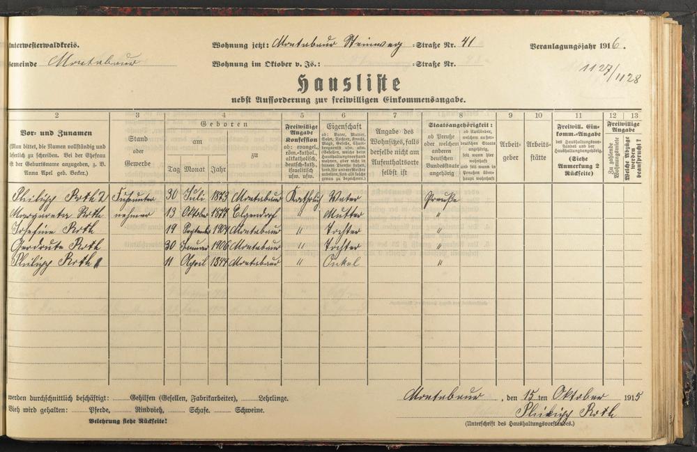 Haushaltsliste 1916, Band II., Abteilung 4, A 283