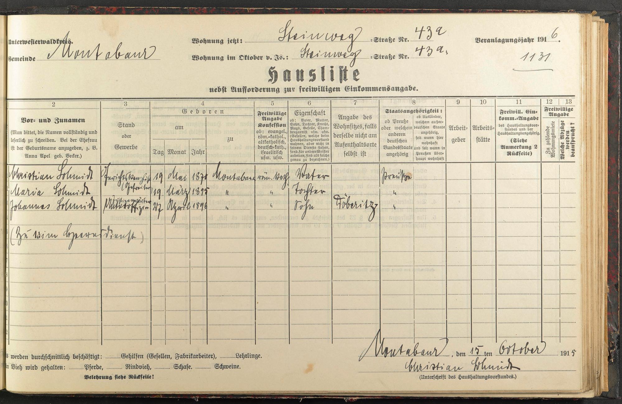 Haushaltsliste 1916, Band II., Abteilung 4, A 283