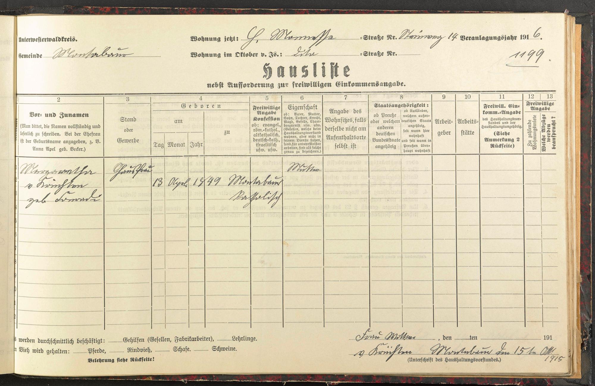 Haushaltsliste 1916, Band II., Abteilung 4, A 283