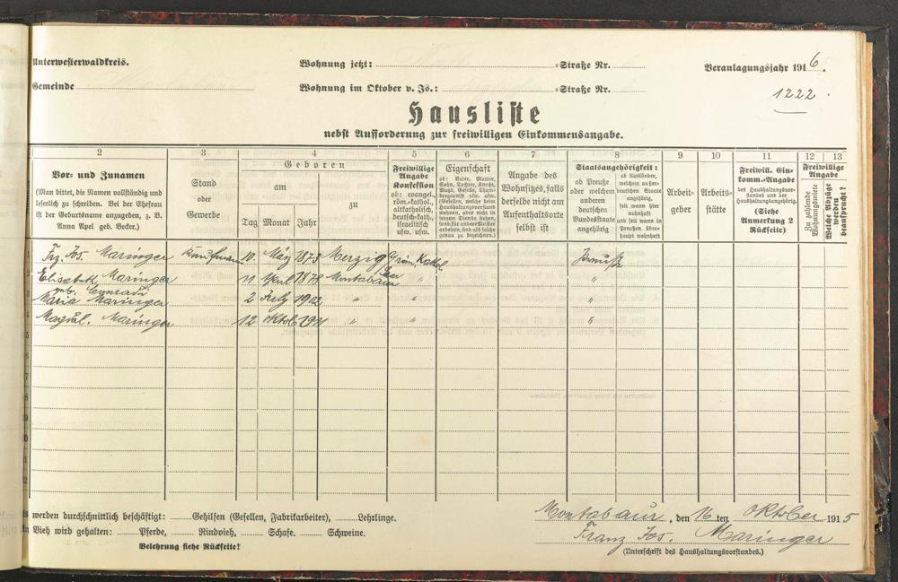 Haushaltsliste 1916, Band II., Abteilung 4, A 283