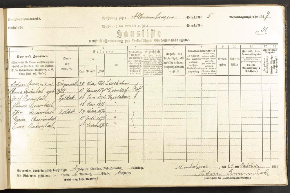 Quirmbach, Adam [Quirnbach] Quirmbach, Anna geb. Bill Quirmbach, Josef Quirmbach, Johanna Quirmbach, Otto Quirmbach, Maria Quirmbach, Irma