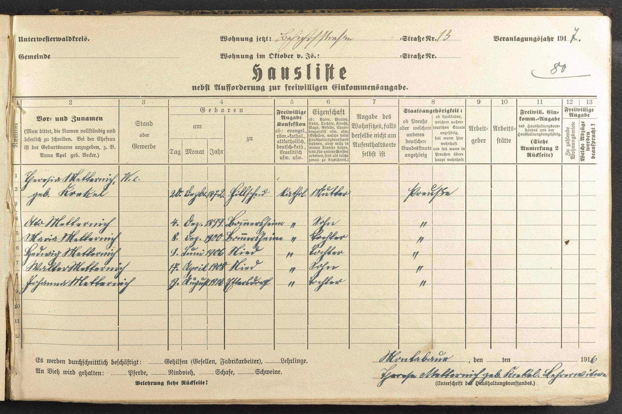 Metternich, Theresia geb. Krekel Metternich, Otto Jhs Metternich, Anna Maria Metternich, Hedwig Metternich, Walter Metternich, Johanna