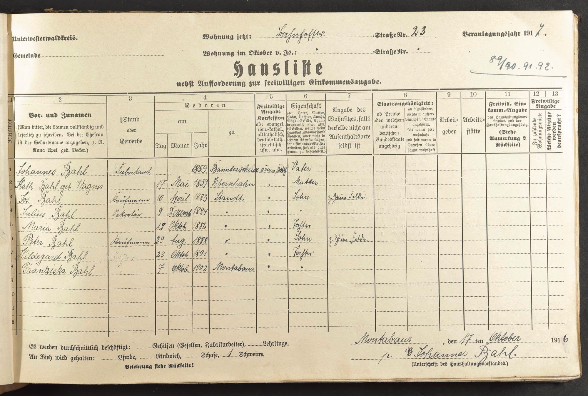 Bahl, Johannes Bahl, Kath. geb. Wagner Bahl, Josef Bahl, Julius Bahl, Maria Bahl, Peter Bahl, Franziska