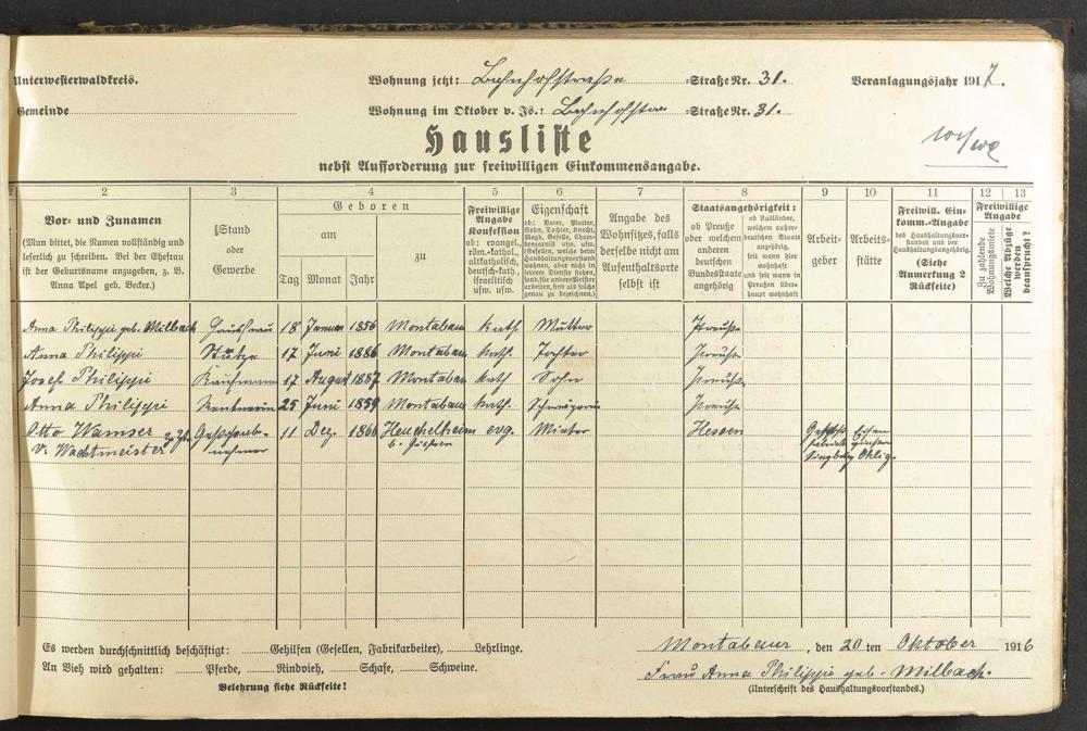 Haushaltsliste 1916/17, Kaiserstraße bis Markt