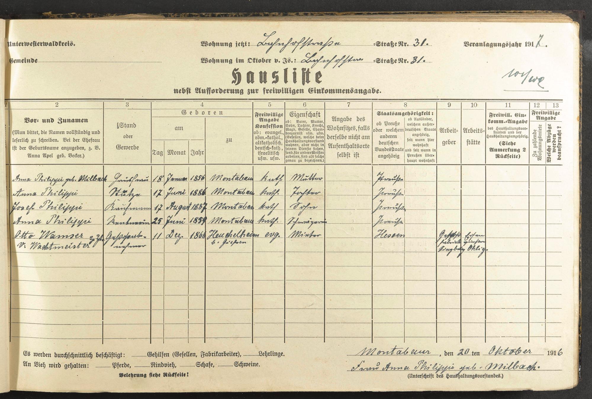 Haushaltsliste 1917, Band I., Abteilung 4, A 284