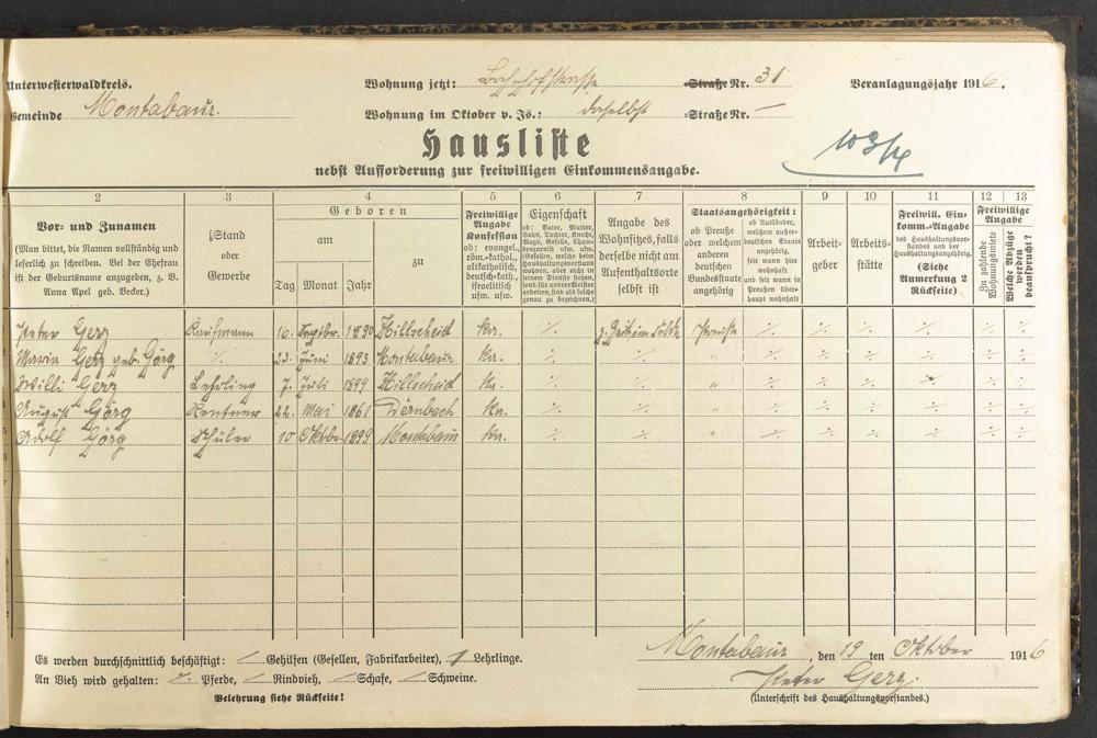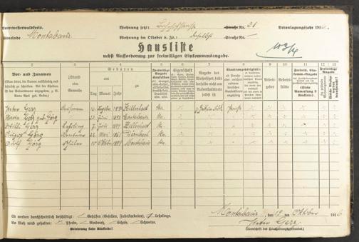 Haushaltsliste 1916/17, Kaiserstraße bis Markt