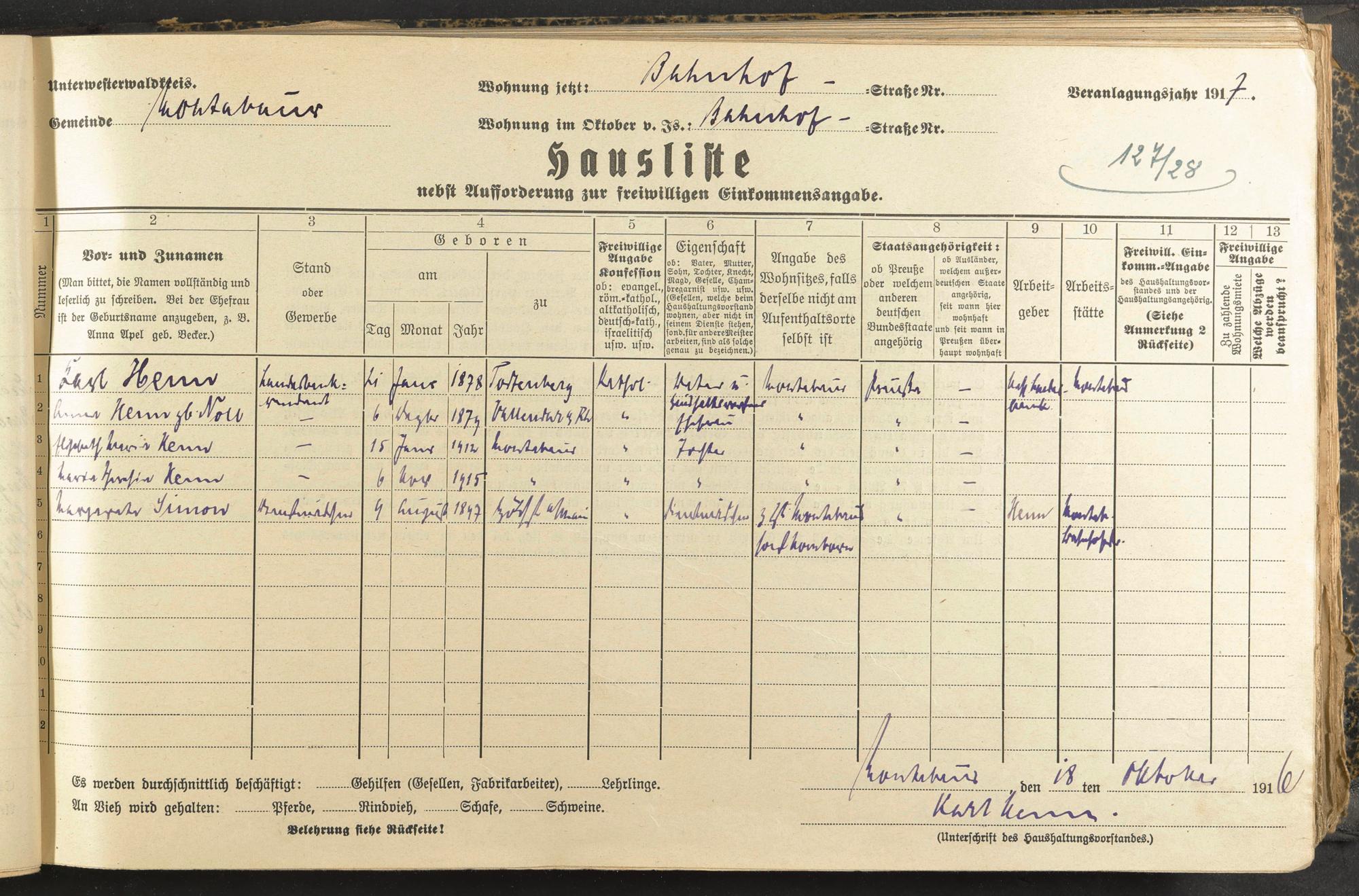 Haushaltsliste 1917, Band I., Abteilung 4, A 284