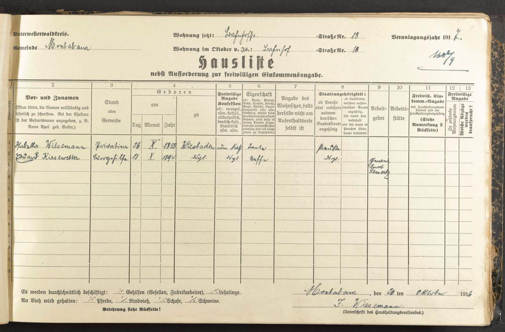 Haushaltsliste 1916/17, Kaiserstraße bis Markt