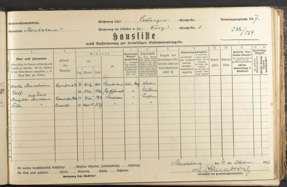 Haushaltsliste 1917, Band I., Abteilung 4, A 284