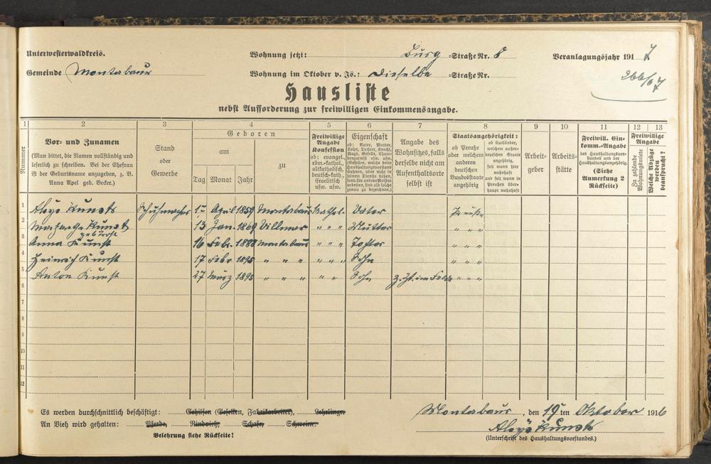 Haushaltsliste 1916/17, Kaiserstraße bis Markt