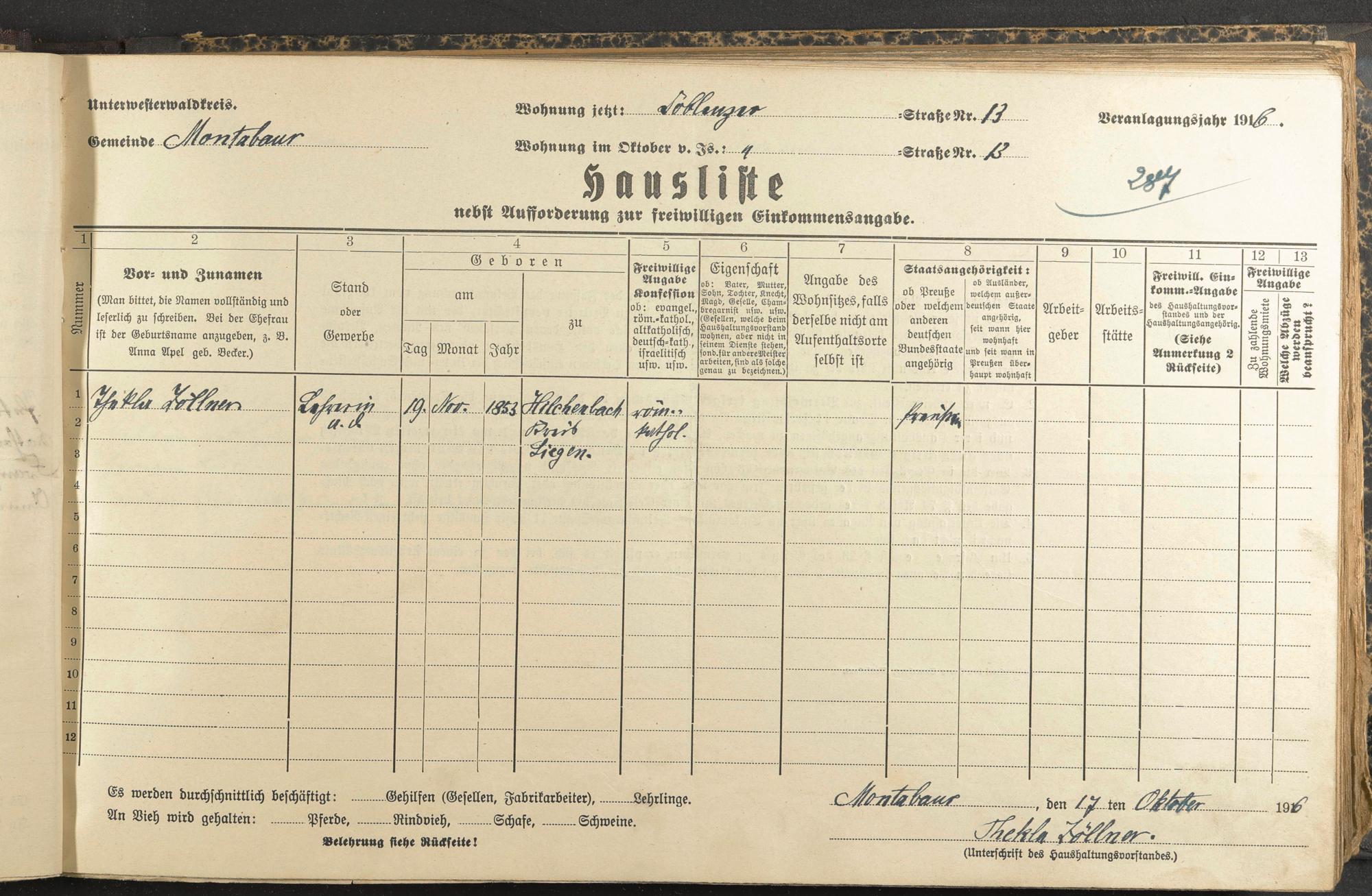 Haushaltsliste 1916/17, Kaiserstraße bis Markt
