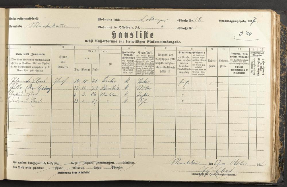 Haushaltsliste 1917, Band I., Abteilung 4, A 284