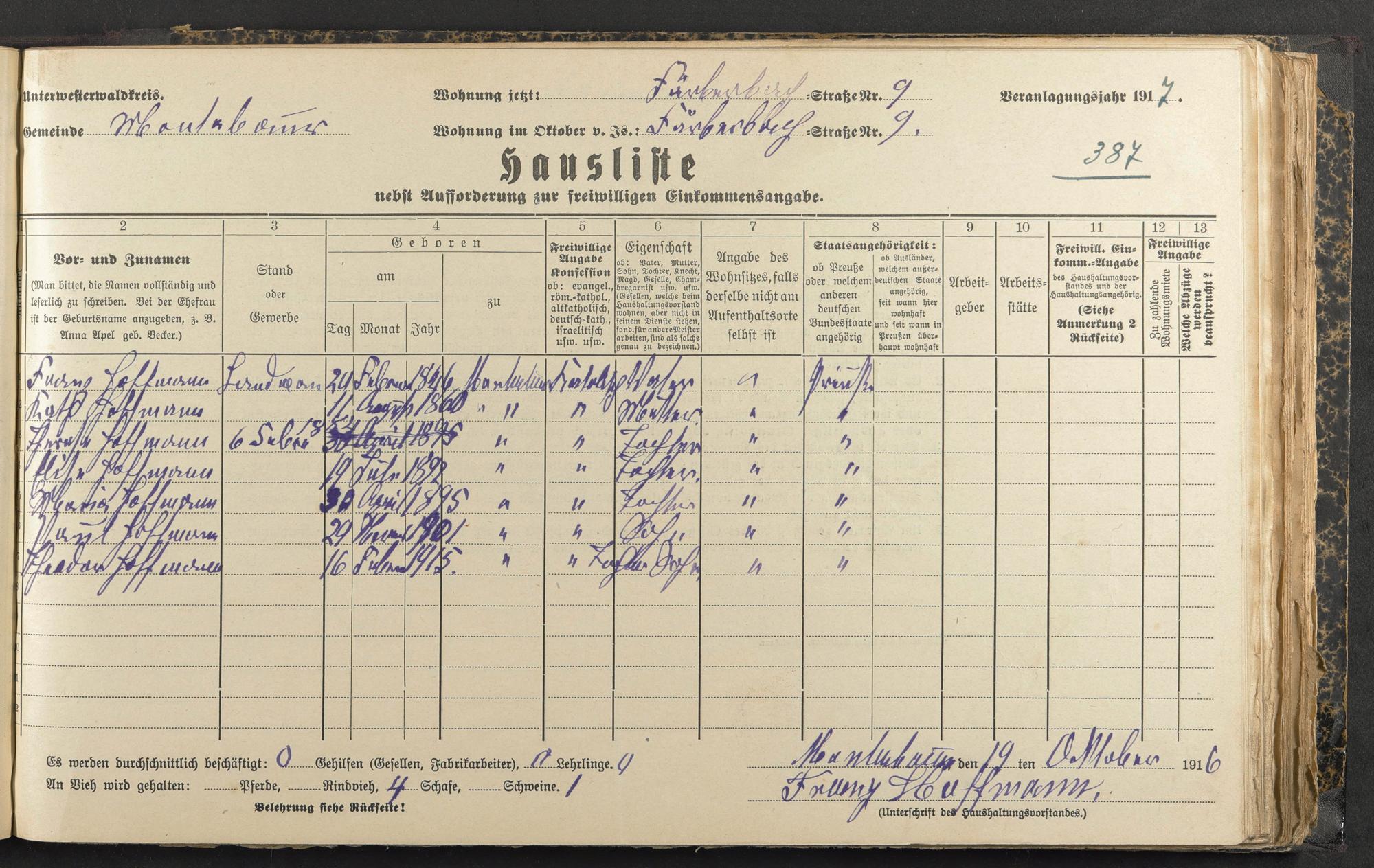 Hoffmann, Franz [Hofmann] Hoffmann, Kath. geb. Hammerstein [Hofmann] Hoffmann, Therese Hoffmann, Elisabeth Hoffmann, Maria Hoffmann, Paul Hoffmann, Theo