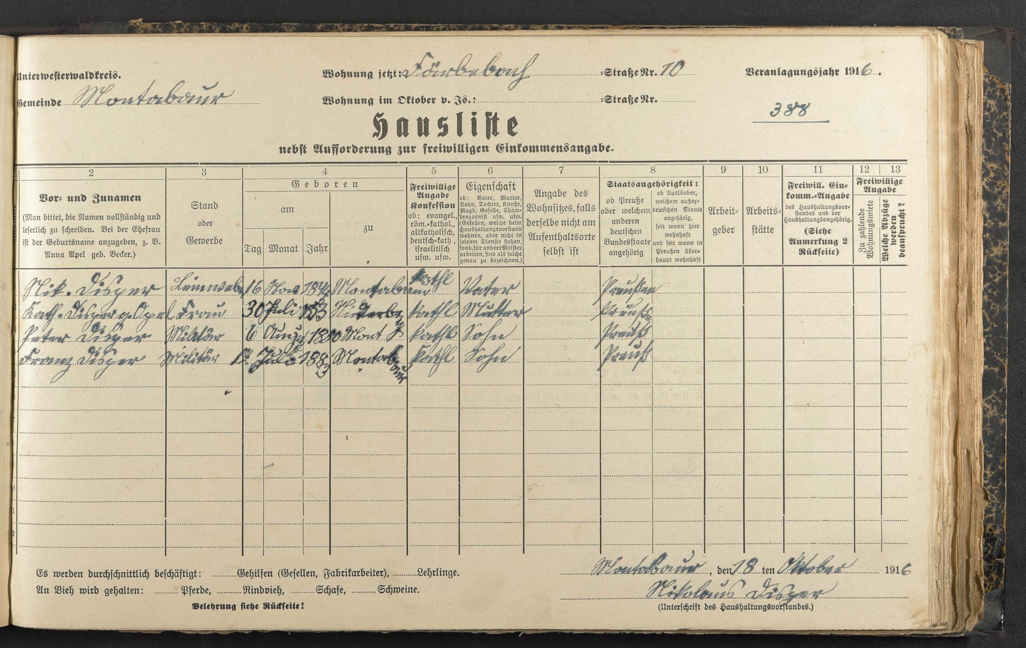 Haushaltsliste 1916/17, Coblenzer Straße bis Judengasse