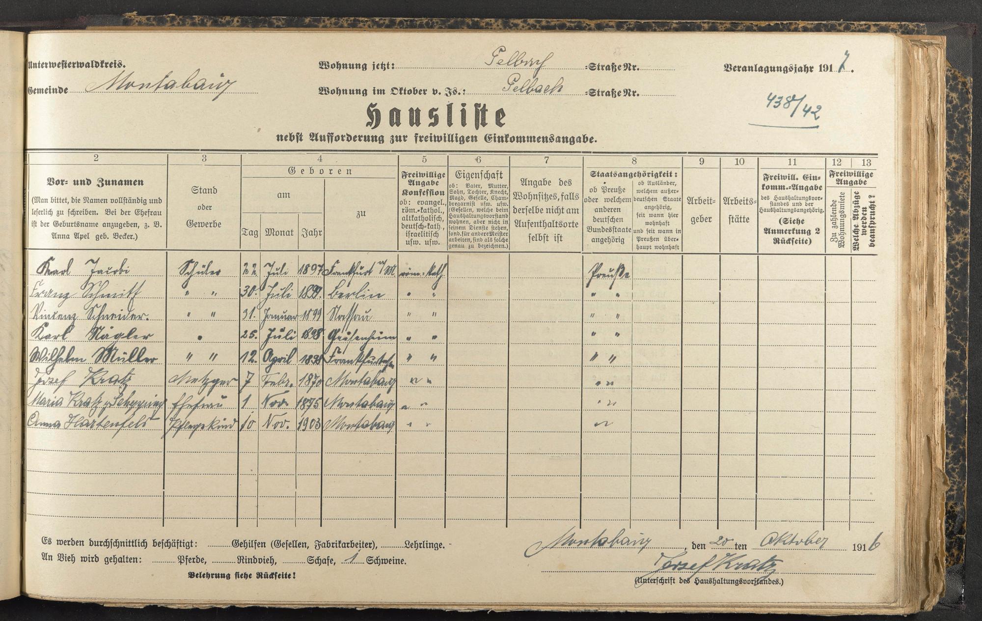 Jacobi, Karl Schmitt, Franz Schneider, Vincenz Nägler, Karl Müller, Wilhelm Kratz, Josef Kratz, Maria geb. Schepping Hartenfels, Anna