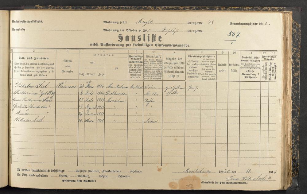 Seel, Wilhelm Seel, Katharina geb. Prötz Seel, Maria Katharina Seel, Gertrude Seel, Anna Seel, Wilhelm