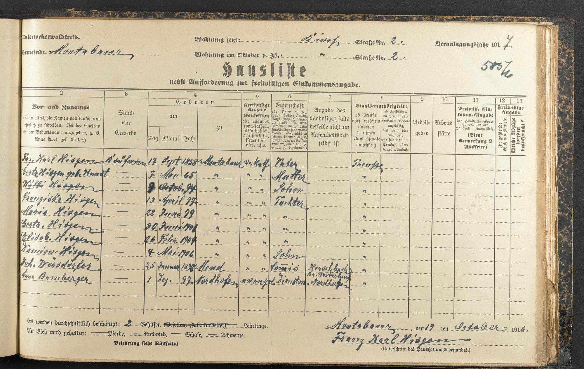 Hisgen, Franz Karl Hisgen, Gertrude geb. Kunst Hisgen, Willi Hisgen, Franziska Hisgen, Maria Hisgen, Gertrude Hisgen, Elisabeth Hisgen, Damian Wörsdörfer, Johann Bamberger, Anna