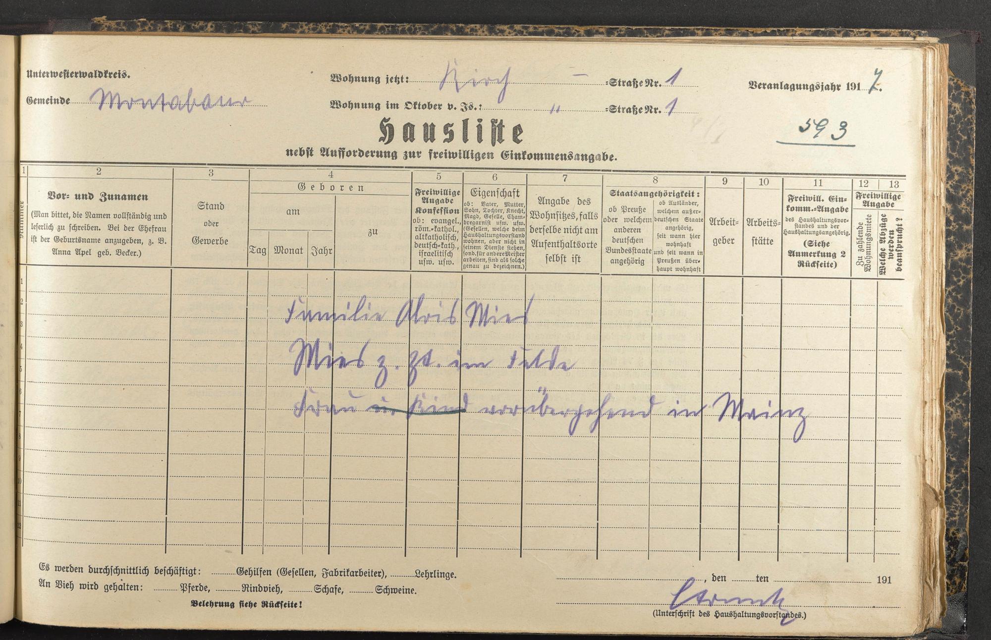 Haushaltsliste 1917, Band I., Abteilung 4, A 284