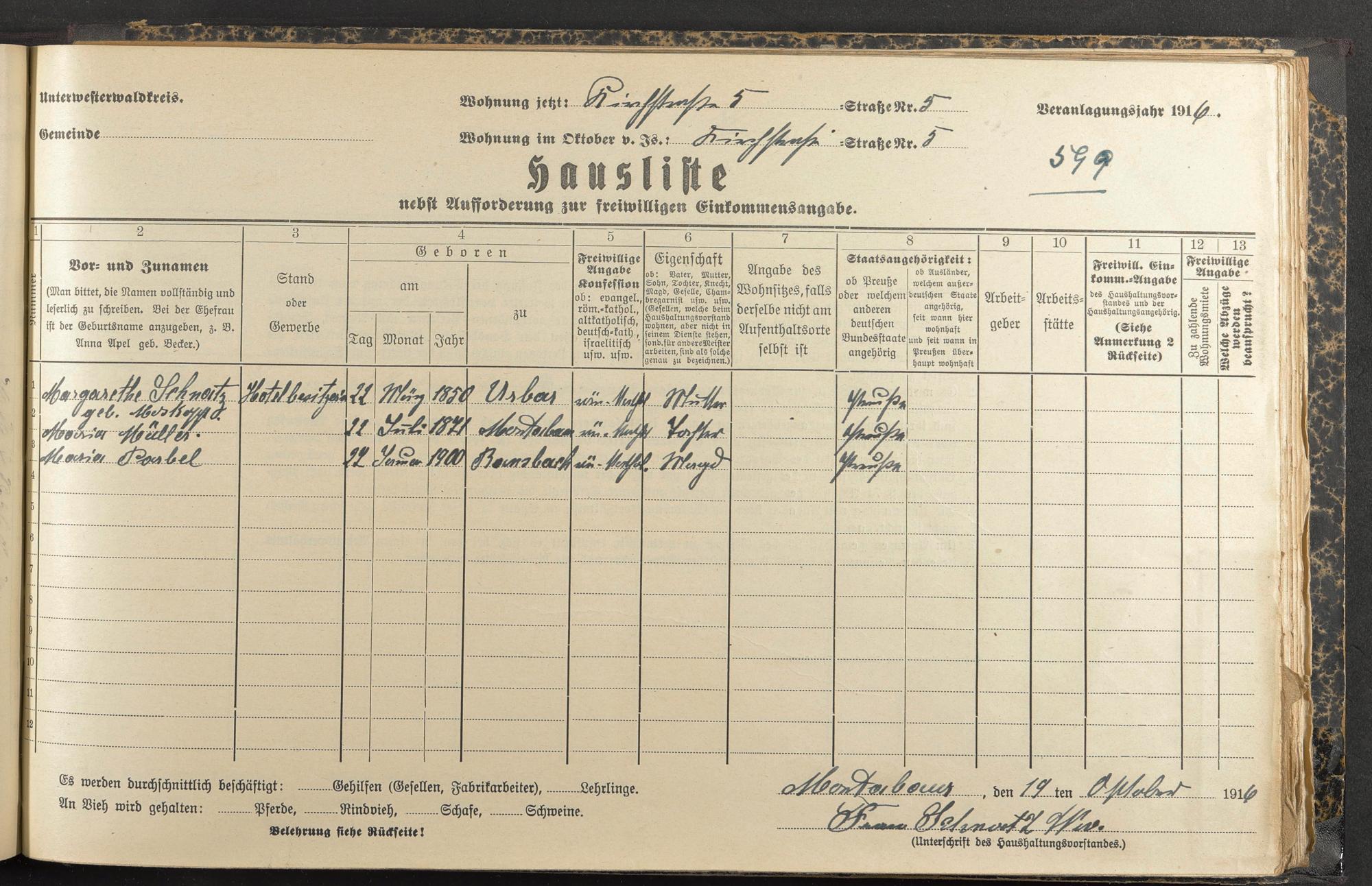 Haushaltsliste 1916/17, Kaiserstraße bis Markt