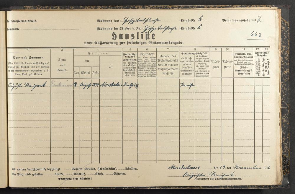 Haushaltsliste 1917, Band I., Abteilung 4, A 284