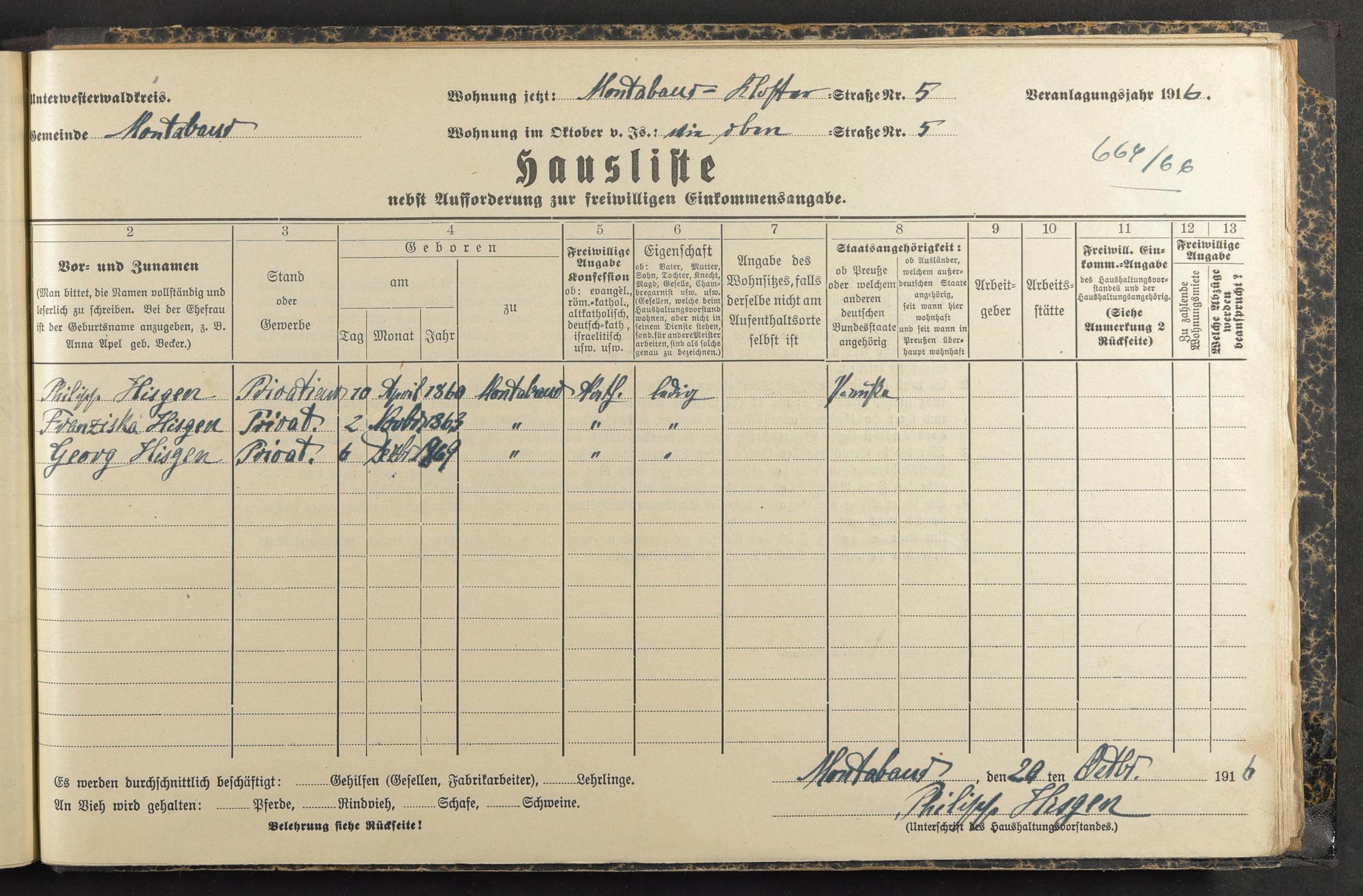 Haushaltsliste 1917, Band I., Abteilung 4, A 284