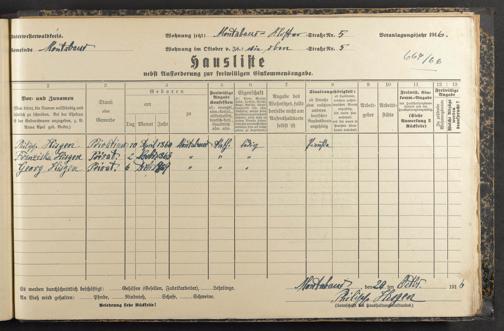 Haushaltsliste 1916/17, Kaiserstraße bis Markt