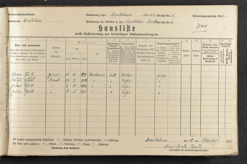 Haushaltsliste 1916/17, Kaiserstraße bis Markt