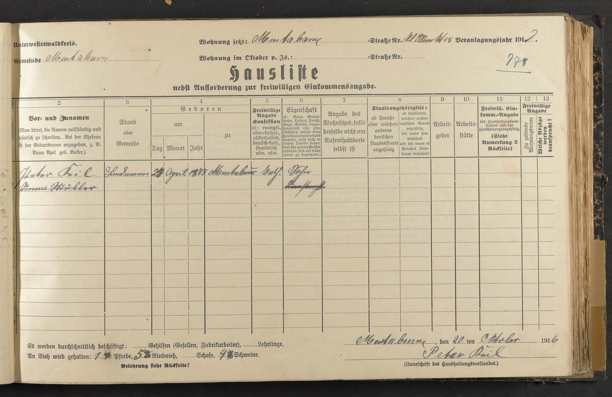 Haushaltsliste 1917, Band I., Abteilung 4, A 284