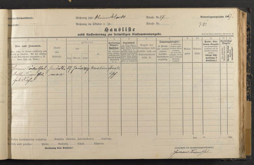 Haushaltsliste 1917, Band I., Abteilung 4, A 284