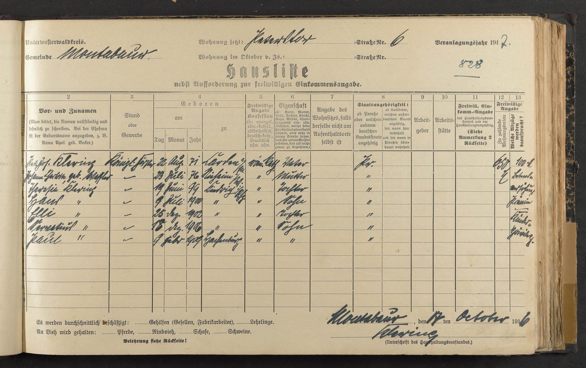Klering, Peter Josef Klering, Johanna Charlotte geb. Weßler [?] Klering, Theresia Agnes Klering, Herm. Jos. Paul Klering, Charlotte Elisabeta Klering, Peter Servatius Klering, Edmund Paul