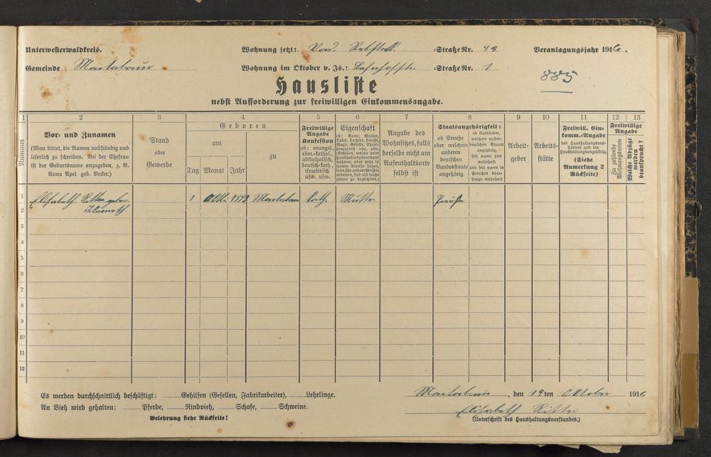 Haushaltsliste 1917, Band II., Abteilung 4, A 285
