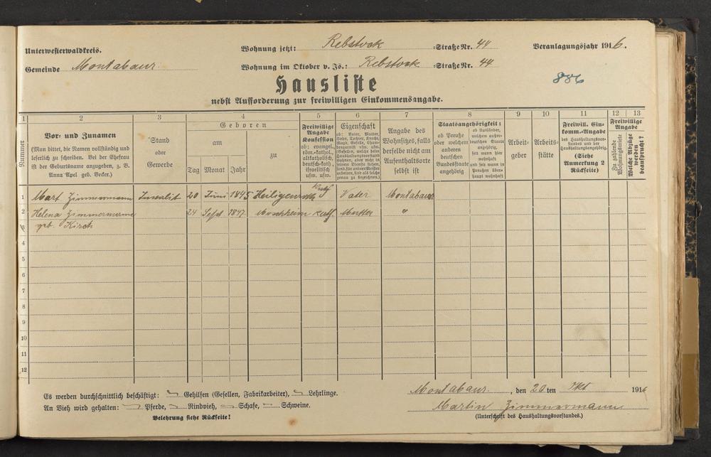 Haushaltsliste 1917, Band II., Abteilung 4, A 285