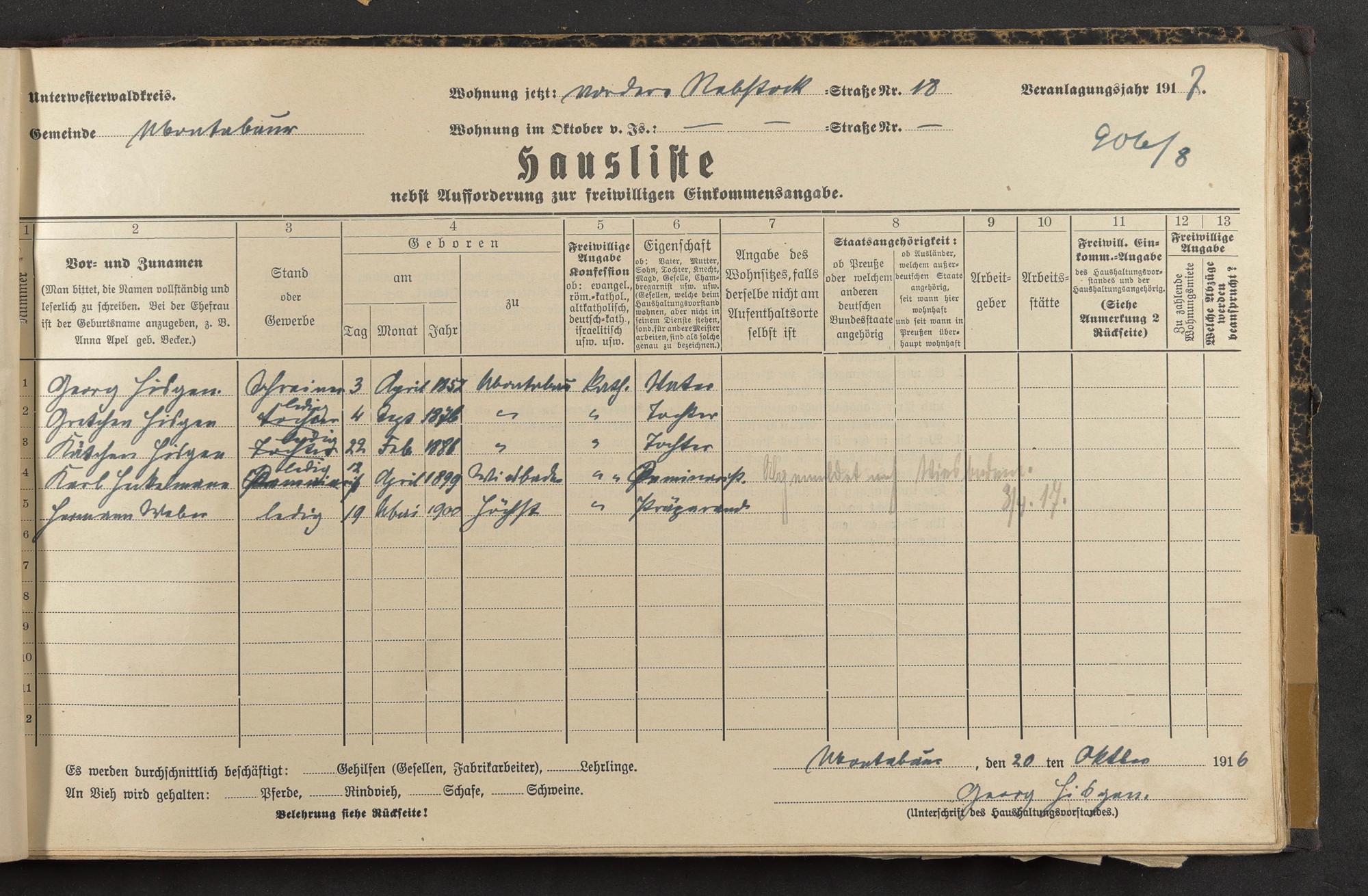Haushaltsliste 1917, Band II., Abteilung 4, A 285