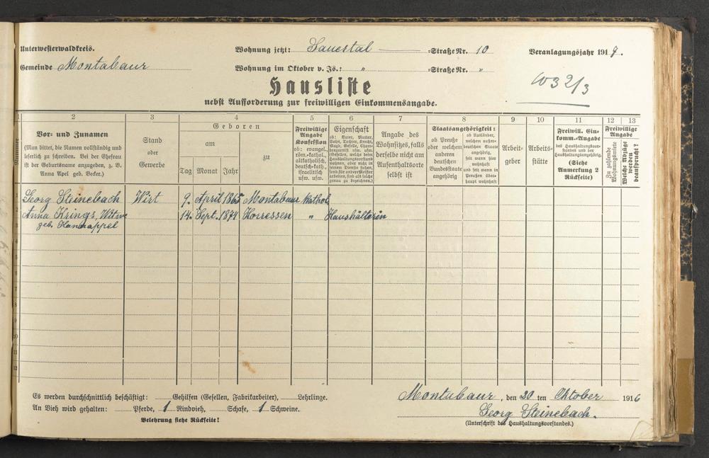 Haushaltsliste 1916/17, Sauertalstraße bis Werbhausgasse sowie Mühlen