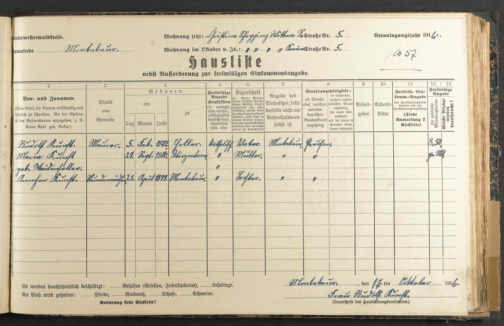 Haushaltsliste 1916/17, Sauertalstraße bis Werbhausgasse sowie Mühlen
