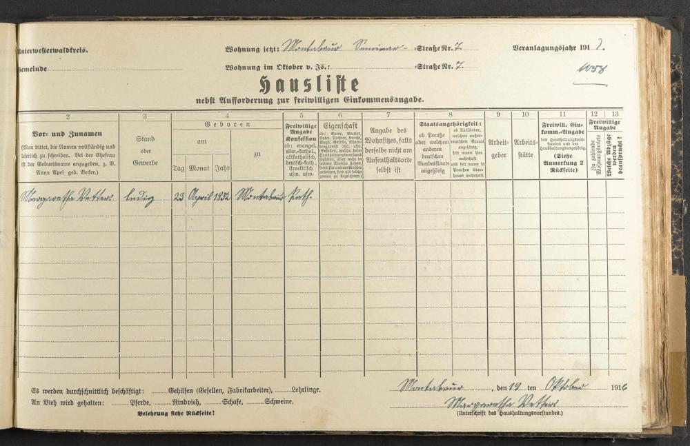 Haushaltsliste 1917, Band II., Abteilung 4, A 285