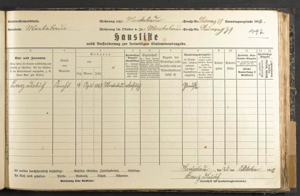 Haushaltsliste 1917, Band II., Abteilung 4, A 285