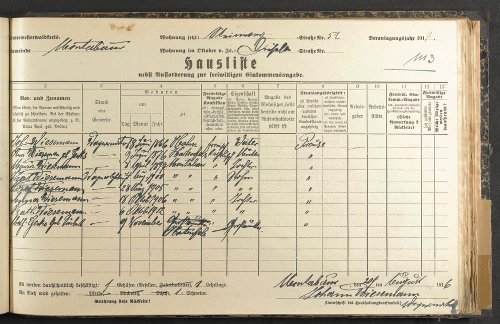 Wiesemann, Johann Wiesemann, Anna geb. Gecks Wiesemann, Maria Wiesemann, Karl Wiesemann, Josef Wiesemann, Anna Wiesemann, Katharina Gecks, Marg. geb. Seibert