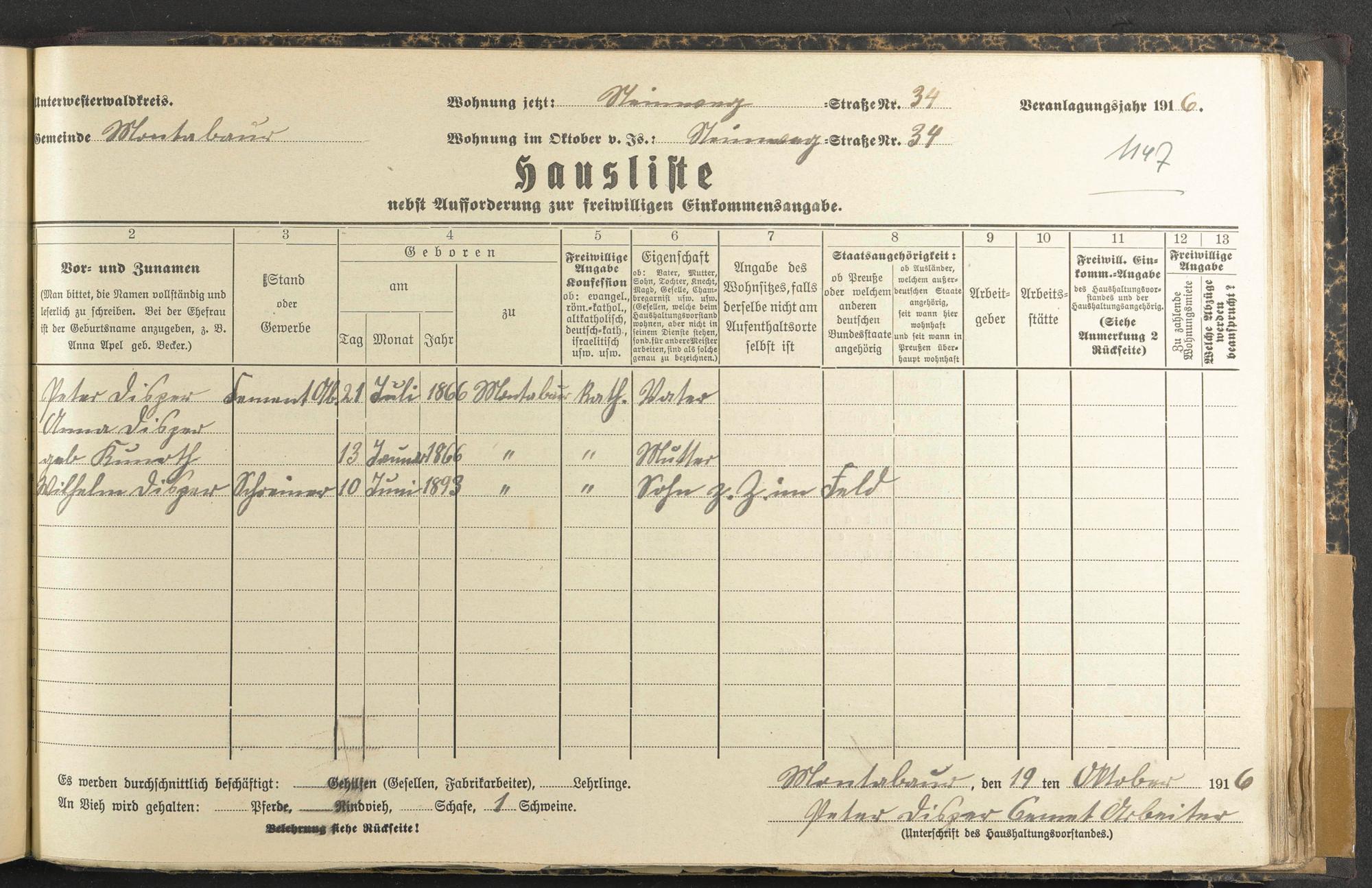 Haushaltsliste 1916/17, Sauertalstraße bis Werbhausgasse sowie Mühlen