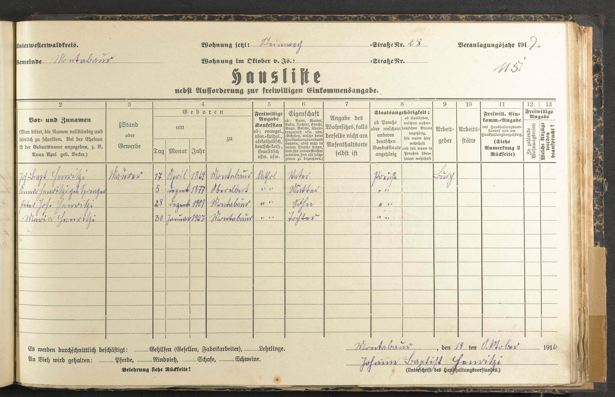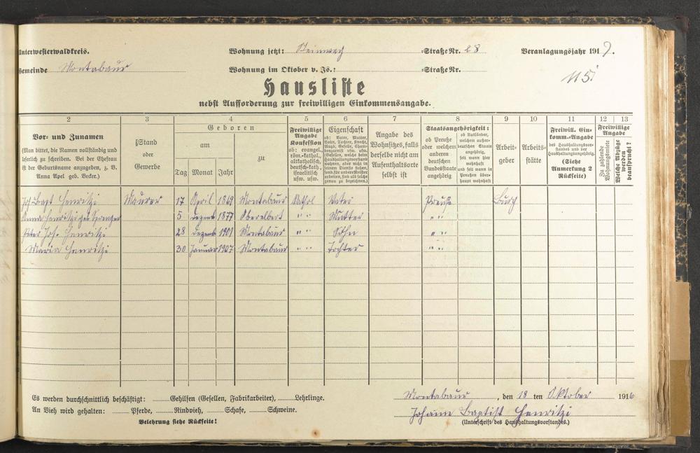Haushaltsliste 1917, Band II., Abteilung 4, A 285