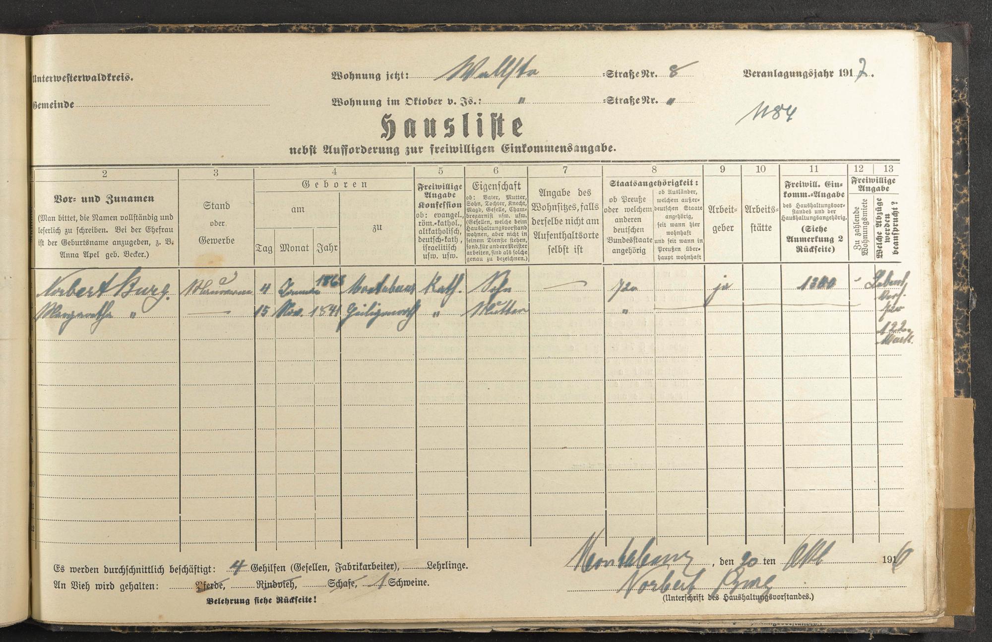 Haushaltsliste 1917, Band II., Abteilung 4, A 285