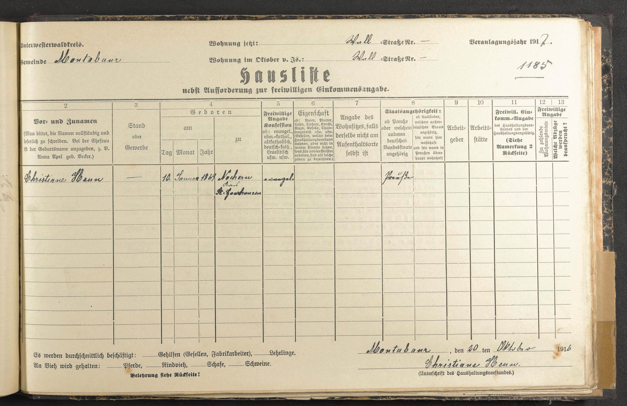Haushaltsliste 1917, Band II., Abteilung 4, A 285