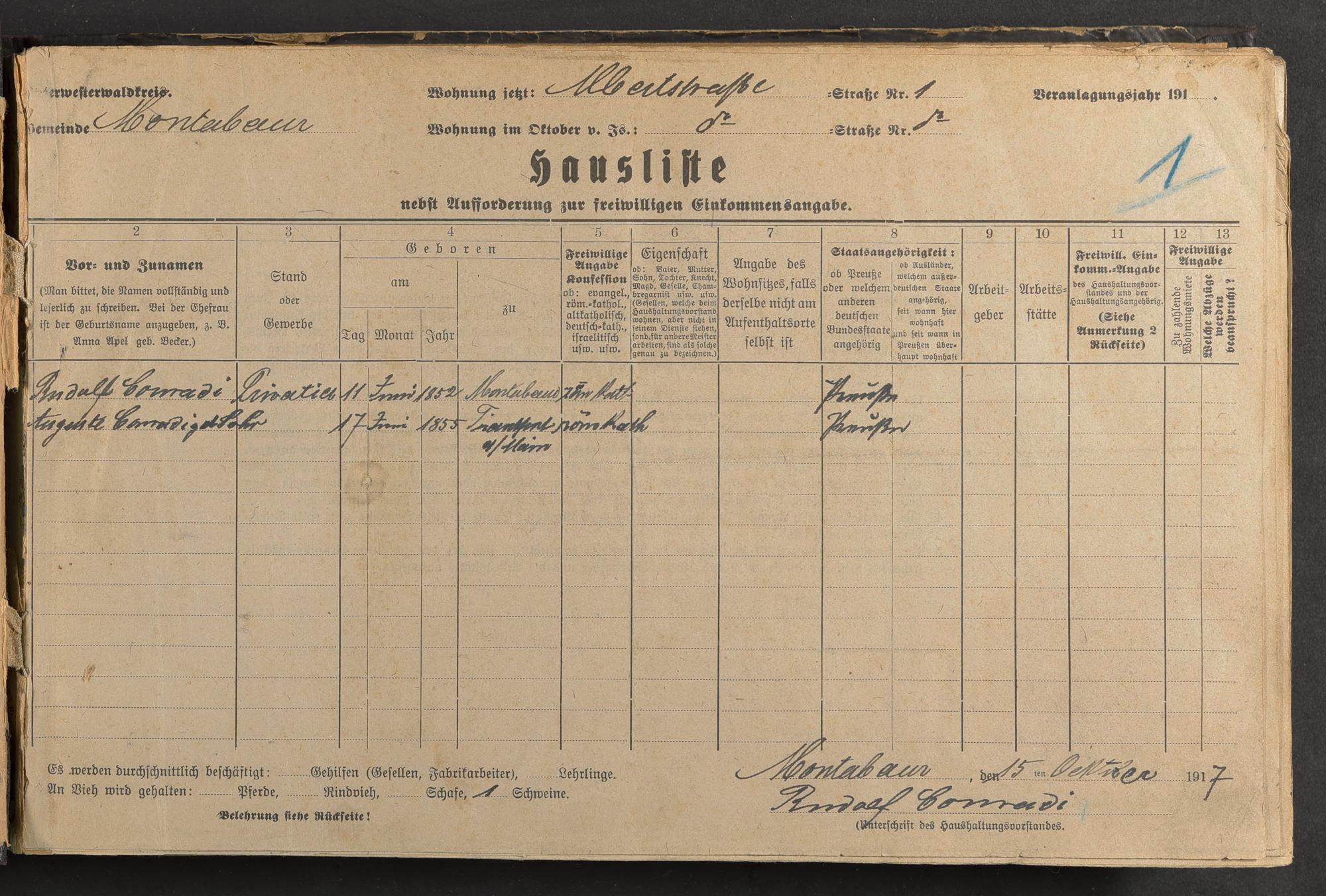 Haushaltsliste 1917/18, Kaiserstraße bis Markt