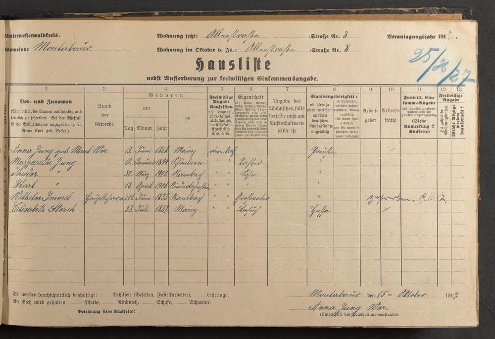 Haushaltsliste 1917/18, Kaiserstraße bis Markt