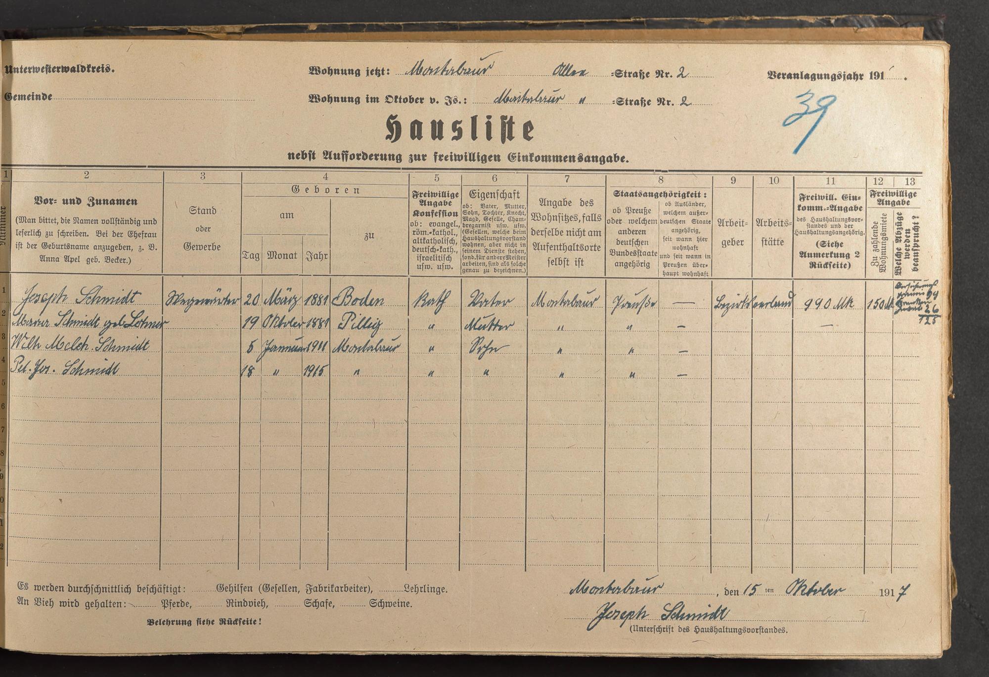 Haushaltsliste 1917/18, Kaiserstraße bis Markt