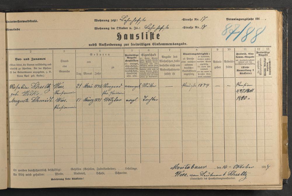 Haushaltsliste 1917/18, Kaiserstraße bis Markt