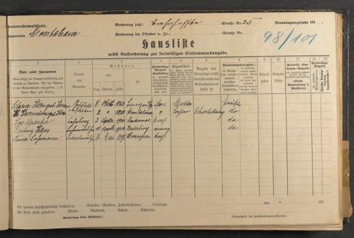 Haushaltsliste 1917/18, Kaiserstraße bis Markt