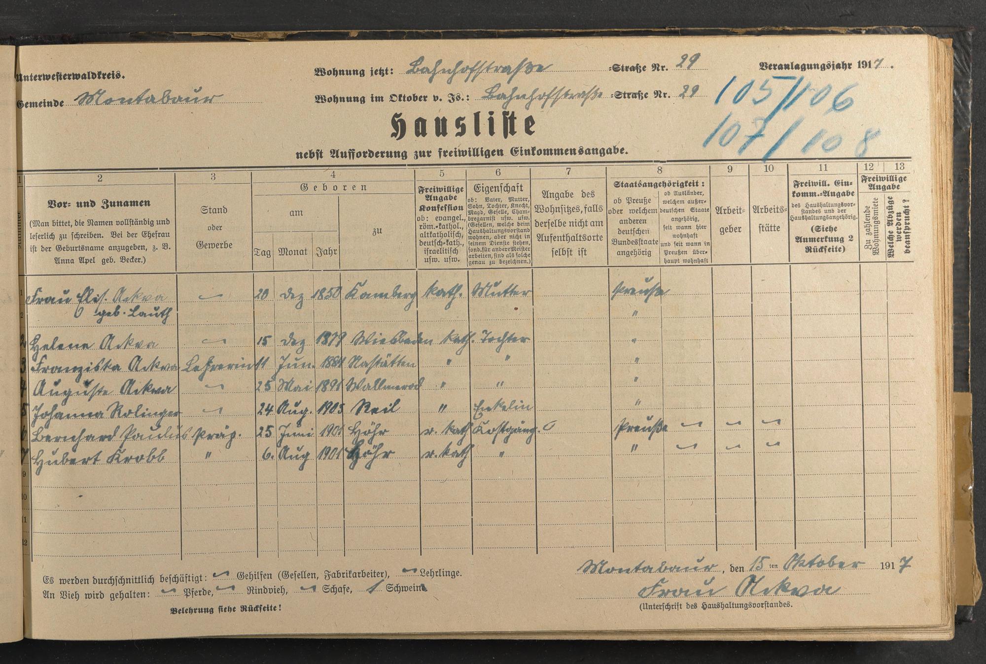 Ackva, Elisabeth geb. Lauth Ackva, Helene Ackva, Franziska Ackva, Auguste Rolinger, Johanna Paulus, Bernhard Krobb, Hubert
