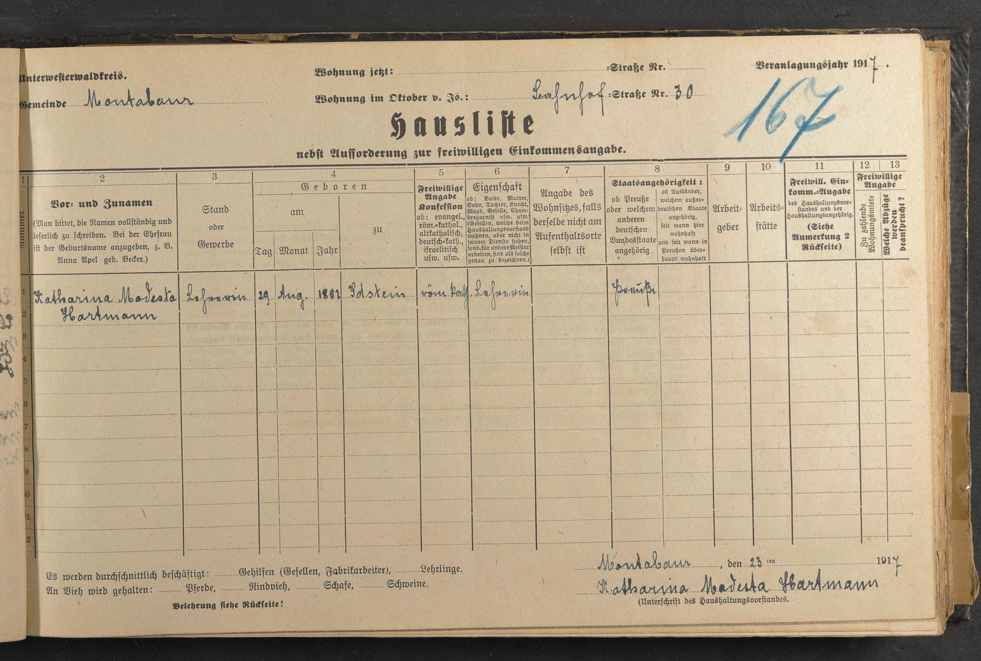 Haushaltsliste 1917/18, Kaiserstraße bis Markt