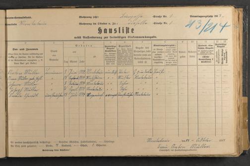 Haushaltsliste 1917/18, Kaiserstraße bis Markt